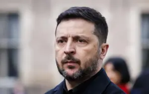 Президент Украины Владимир Зеленский отвечает на вопросы журналистов AFP во время интервью в Киеве 20 …