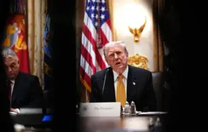 Президент США Дональд Трамп выступает во время встречи с премьер-министром Венгрии Виктором Орбаном в Белом …