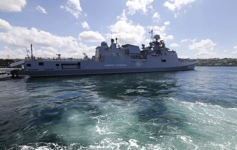 Фрегат «Адмирал Григорьевич» — первый военный фрегат проекта «Буревестник» ВМФ РФ, носитель крылатых ракет «Калибр» залпом восемь единиц и ЗРК «Штиль-1» (24 ракеты). По словам Бровди, при ударе по судну фрегат попытался отражаться своей же системой противовоздушной обороны, но не справился.