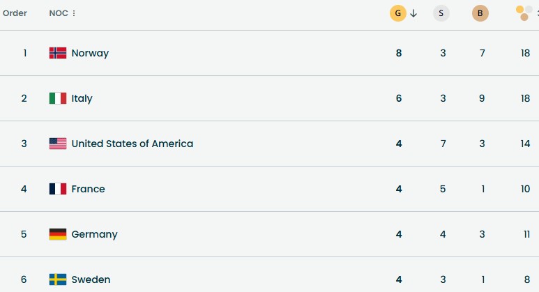 ОЛИМПИАДА-2026: МЕДАЛЬНЫЙ ЗАЧЕТ ЗИМНИХ ИГР В ИТАЛИИ