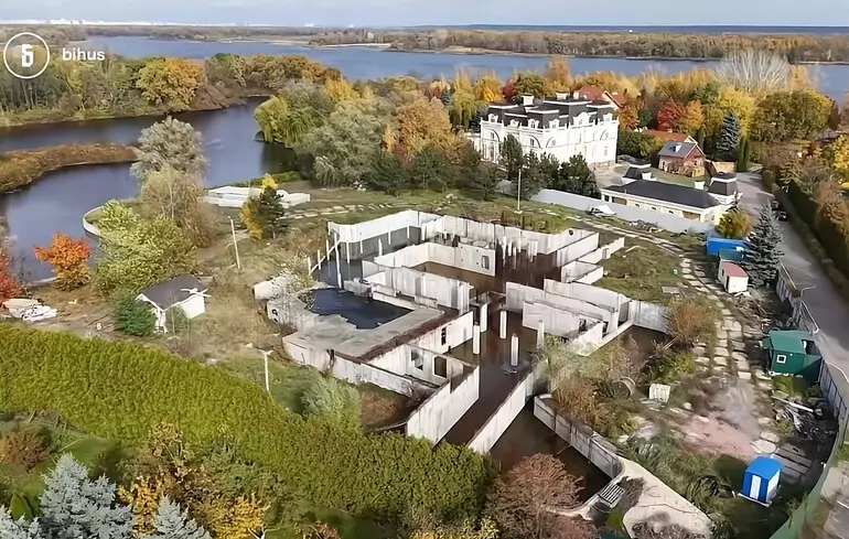 Недостроенный дворец бывшего депутата Киевского городского совета и бизнесмена Дениса Комарницкого, который фигурирует в деле о незаконном завладении землей и сейчас находится за границей, до сих пор не арестован.
