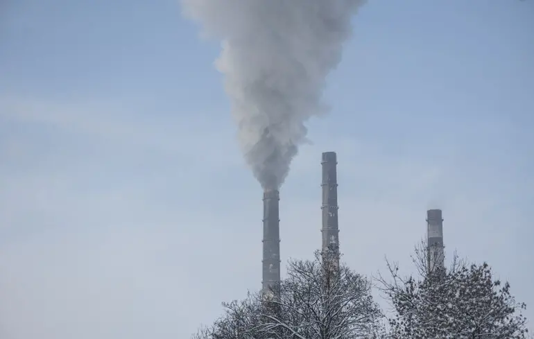 Дым поднимается из трубы Бурштынской ТЭС, Ивано-Франковская область, Украина / 8 января 2026 года Россияне били по энергетике.