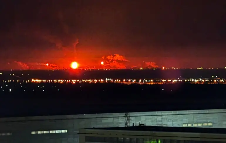 Среди пораженных объектов нефтеперерабатывающие заводы и нефтебазы.