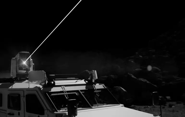 Оператор установил лазерную пушку на крыше своего пикапа посреди пустого поля. Она напоминала любительский телескоп с несколькими камерами, прикрепленными по бокам. Для тренировки один из инженеров запустил небольшой дрон. Тот отлетел на несколько сотен метров и завис в тусклом зимнем небе. Лазер вращался, а камеры следили за целью. Оператор воскликнул: «Огонь!». Через несколько секунд дрон начал гореть, как будто пораженный невидимой молнией, а затем упал на землю горящей дугой.