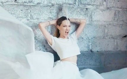 АНДЖЕЛИНА ДЖОЛИ В ЗЕФИРНОМ ПЛАТЬЕ С БАЛЛОНАМИ КРАСКИ В РУКАХ ПОЗИРОВАЛА ДЛЯ ФОТОГРАФА ЗЕЛЕНСКОЙ